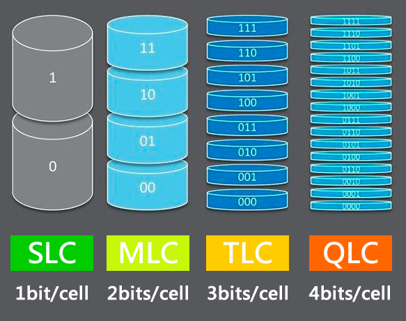 以此类推,QLC 每个储存单元可容纳 4bit 数据,数据密度较 TLC 再次翻倍。