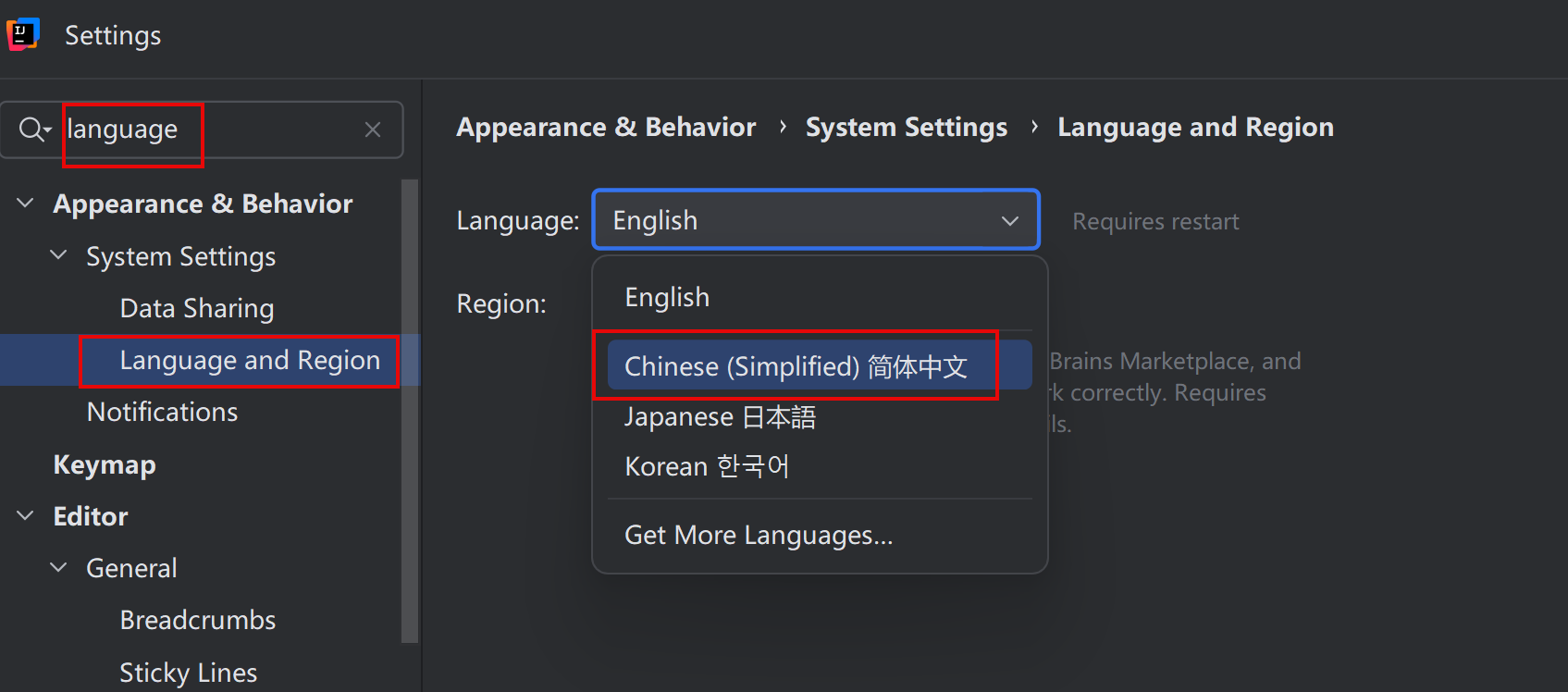 2024中文汉化,点击plugins,搜索框搜索chinese,找到Chinese (Simplified)点击install,安装完成重启软件即使中文语言。