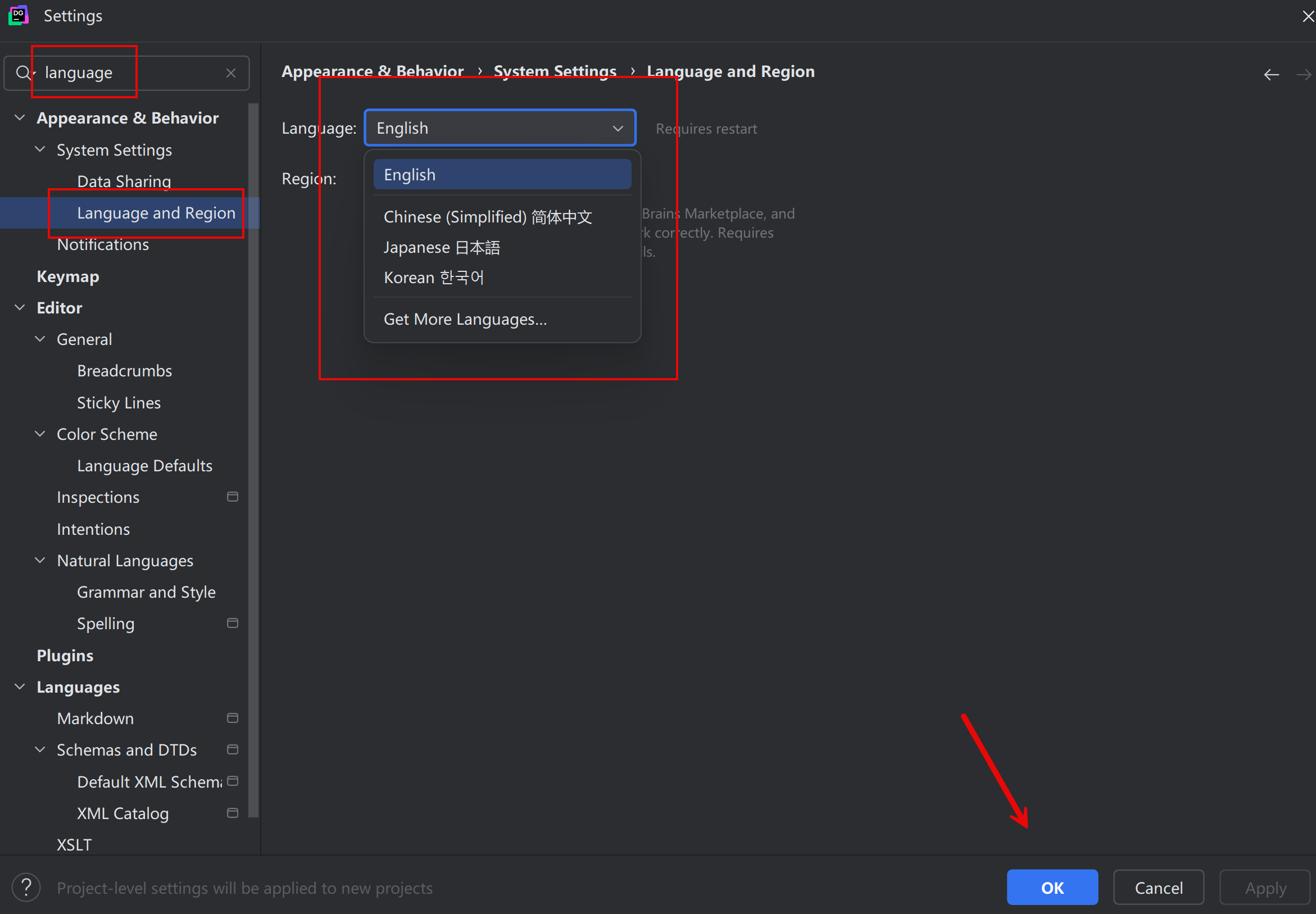 接下来中文汉化,点击plugins,搜索框搜索chinese,找到Chinese (Simplified)点击install,安装完成重启软件即使中文语言。