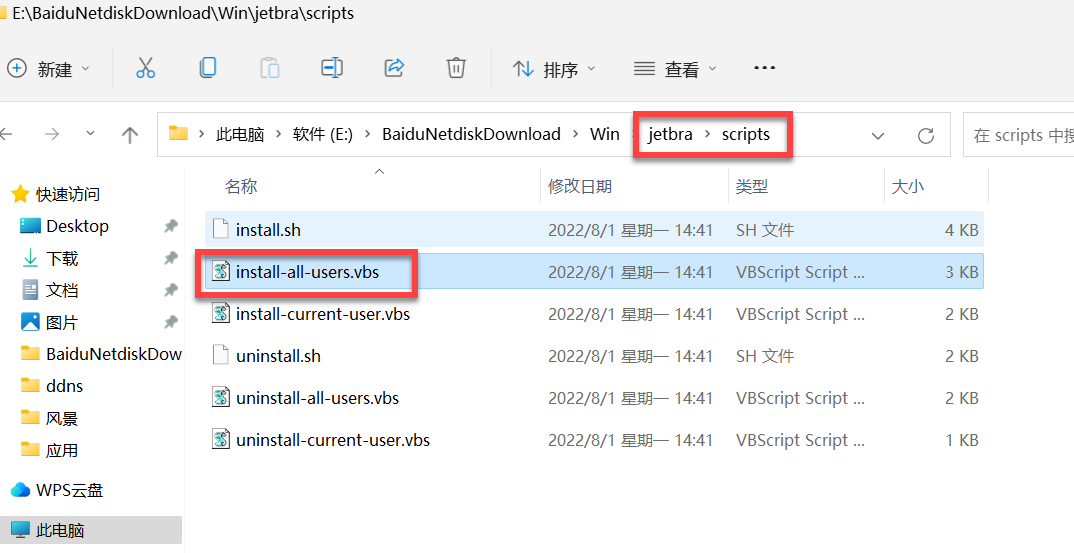 双击执行install-all-users.vbs脚本文件(文件在下载的安装包jetbra\scripts文件夹下),点击确定。