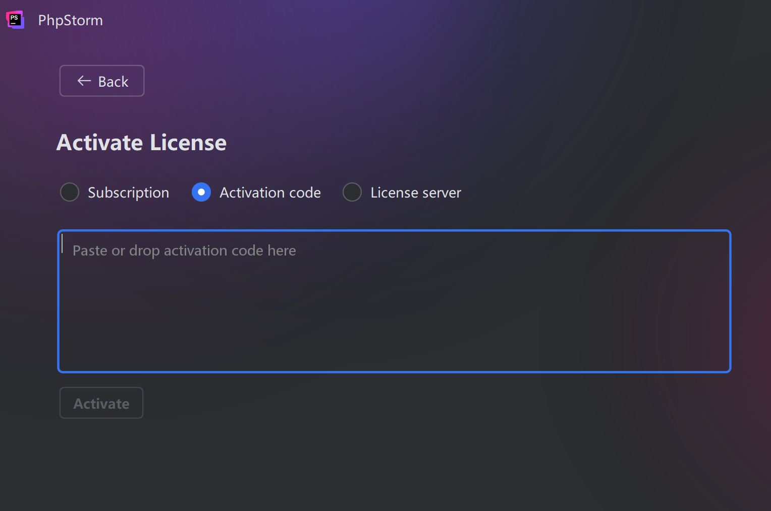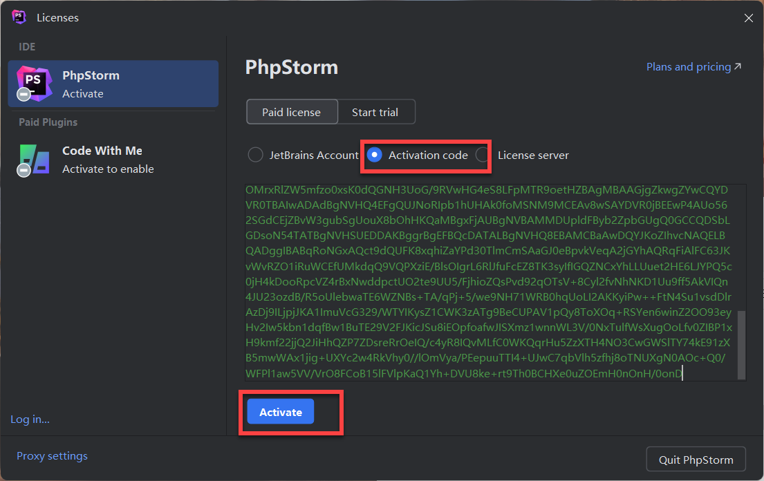 打开PhpStorm 2025软件,Activate paid license进入激活页面。将注册激活码复制到下图激活页面,击Activave即可激活使用。不用在意激活的时间,已经永久激活。