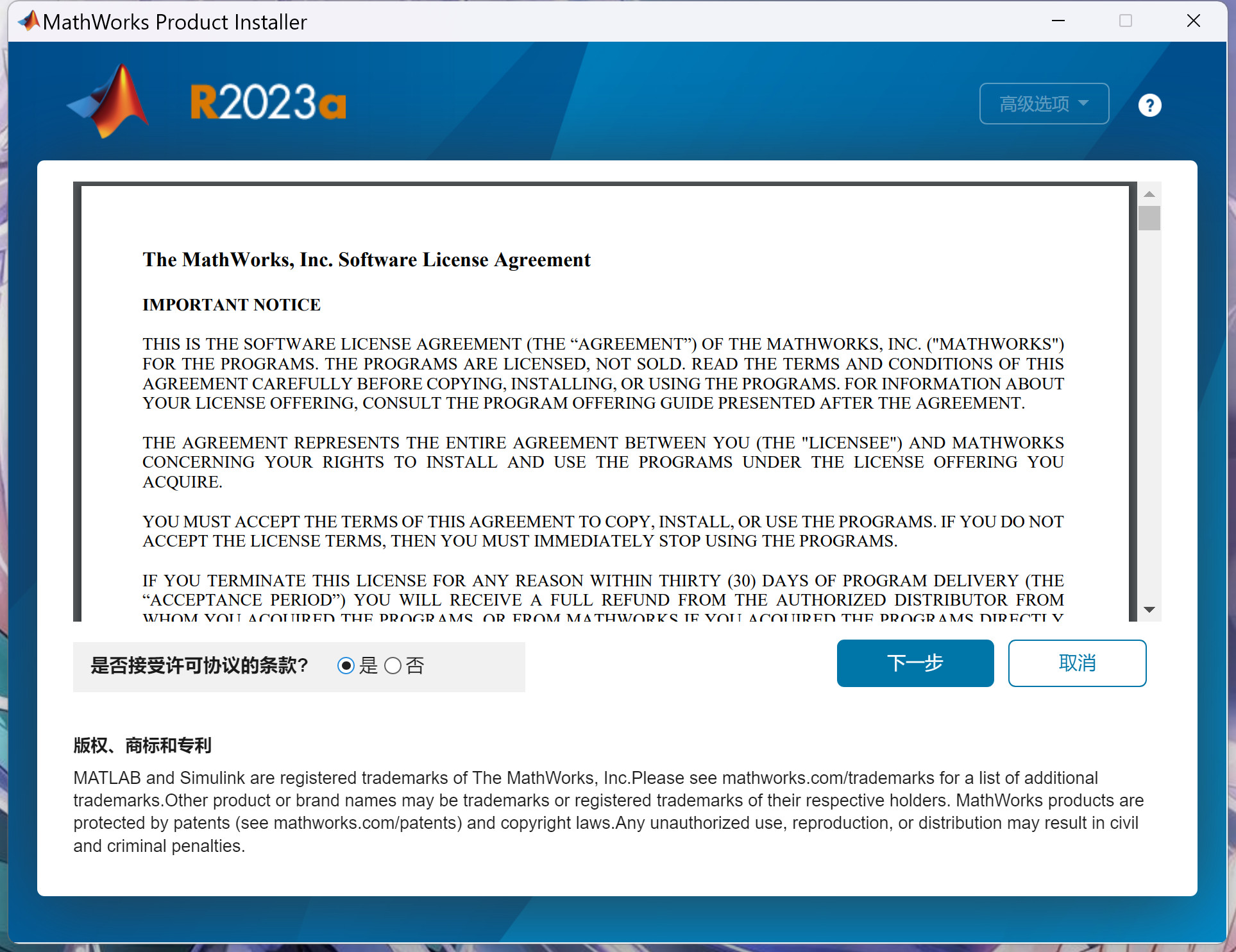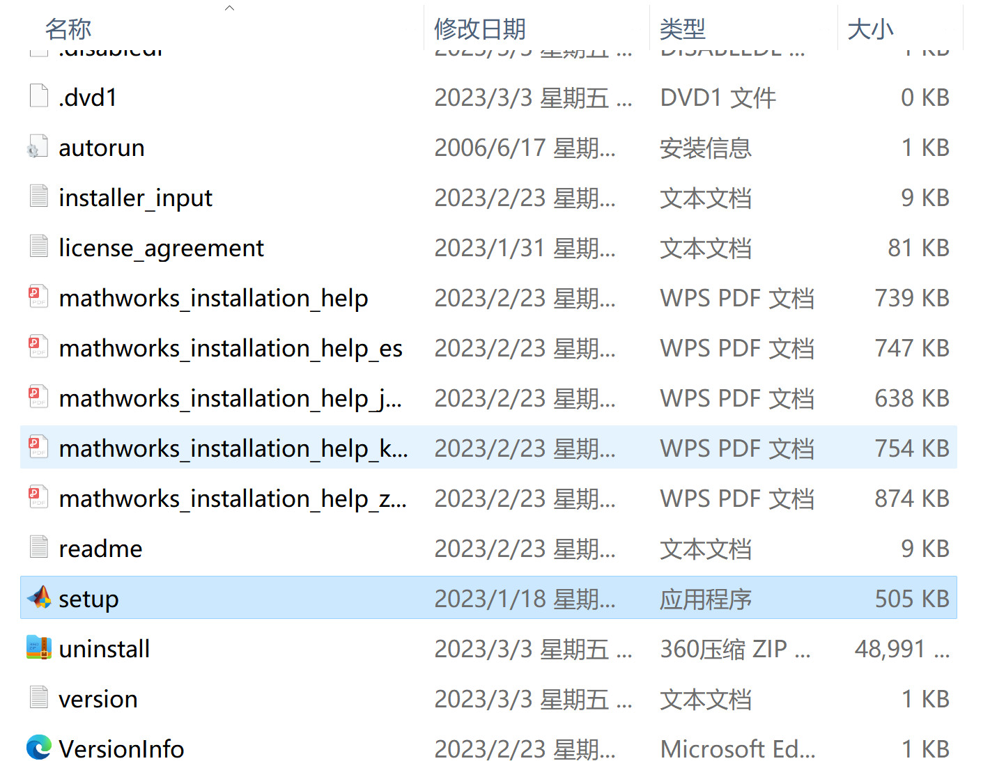1,解压在本站下载好的MATLAB R2023a安装包,双击setup.exe 安装MATLAB。