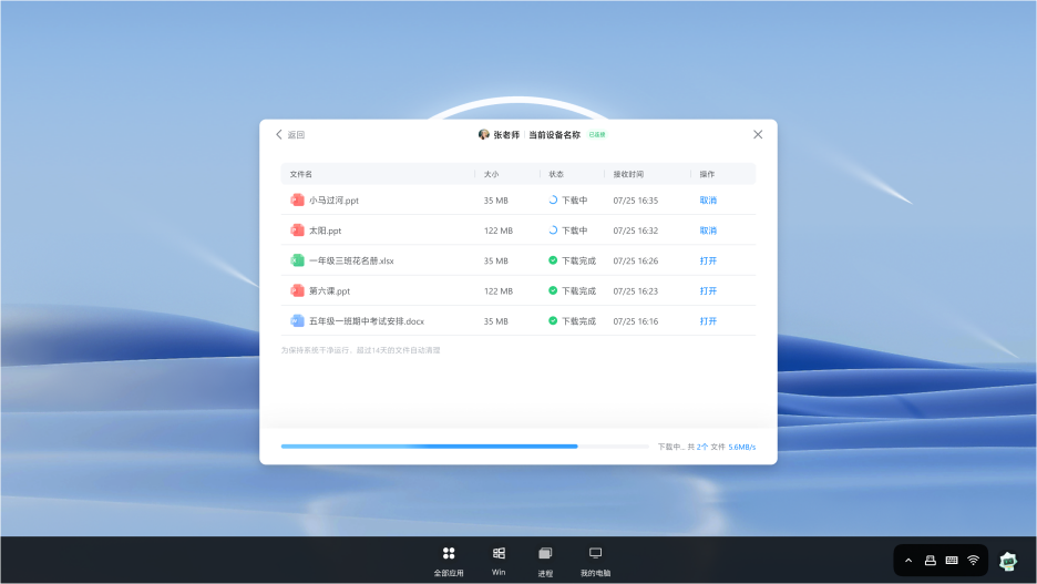 首先,它打破了授课场景与办公场景的壁垒,为电脑加上了无形的桥梁,这就是希沃快传功能。只要有一台希沃一体式教育终端,无论教师在哪里,都可以将课堂资料提前传到对应教室里,教室会自动把资料下载好,无需借助任何工具,教师就能轻松上课。从此办公室不再是一个封闭的空间,它的触角与教室无缝相连。