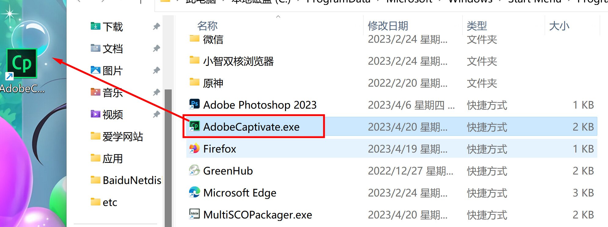 为了使用方便可以创建桌面快捷方式(右下角开始搜索AdobeCaptivate右键打开文件位置,将图标复制到做面即可)