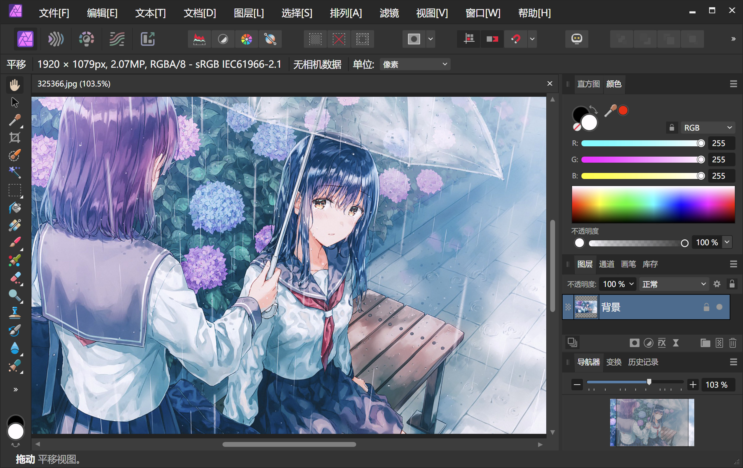 - 全功能编辑器:Affinity Photo是一款全功能的照片编辑器,支持图像调整、颜色管理、图层控制等多项功能。