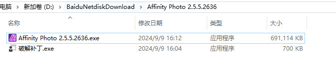 2、安装完成后关闭软件,将破解补丁.exe复制到安装目录C:\Program Files\Affinity\Photo 2。