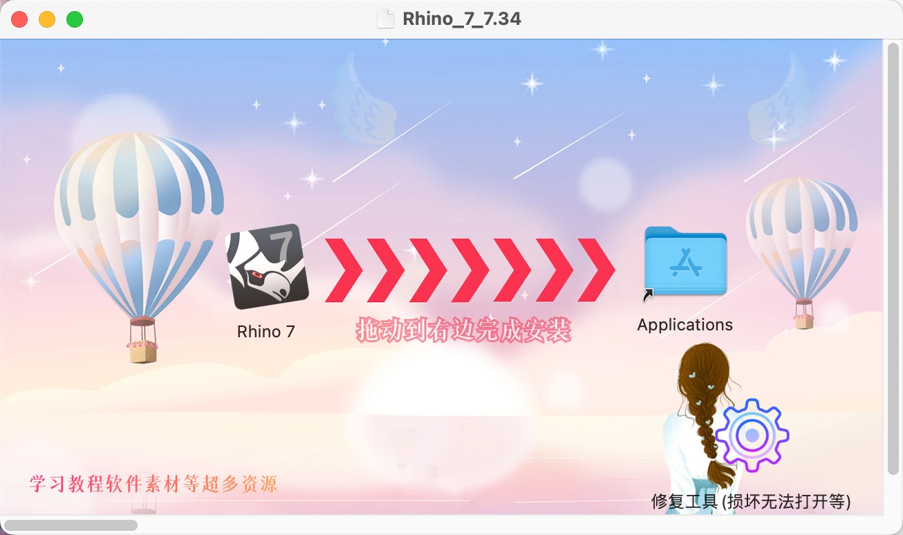 犀牛软件Mac版安装包下载完成后打开,拖动安装