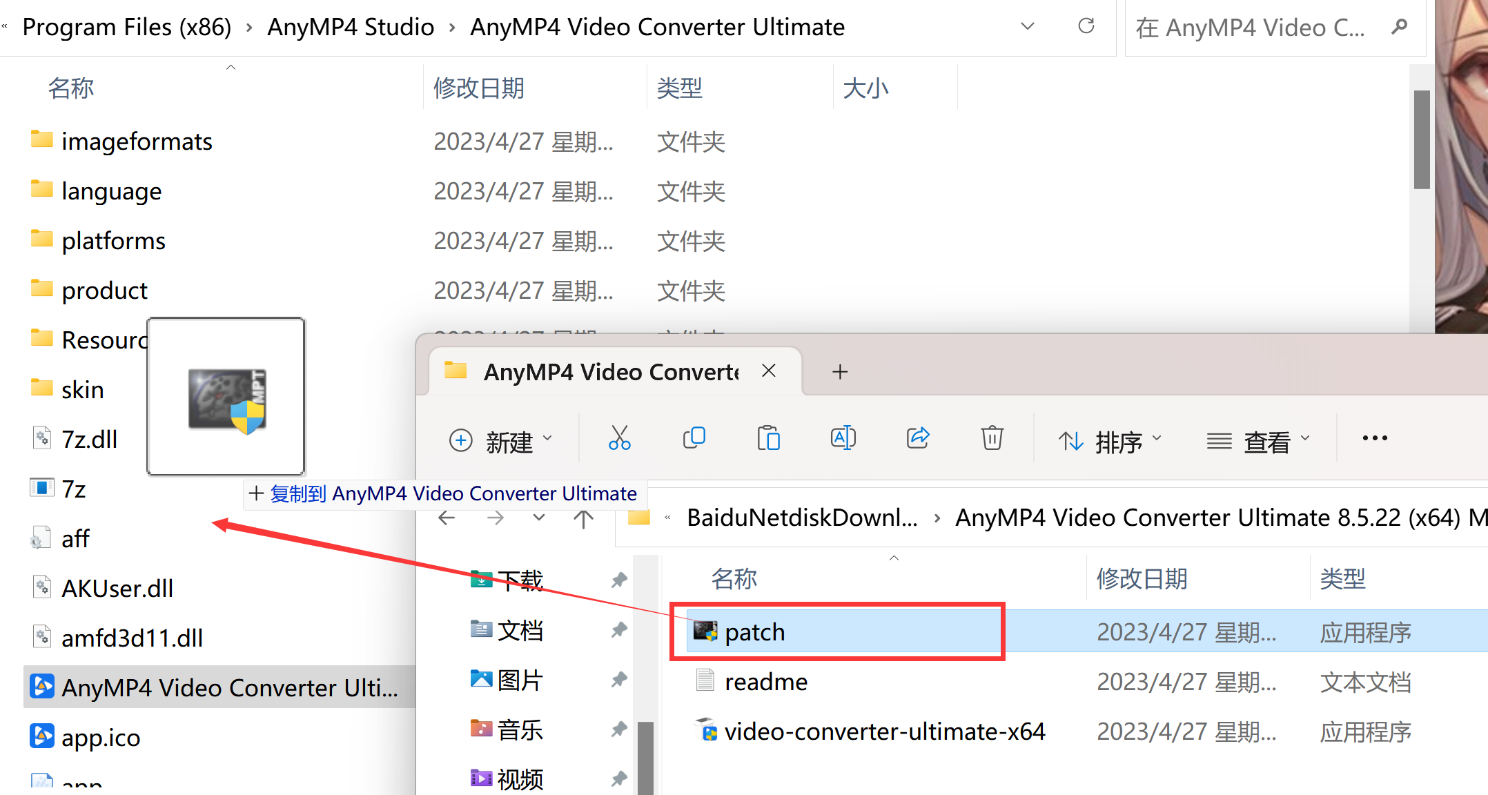2、复制安装包内patch文件到软件安装目录(安装目录:鼠标右击软件图标,选择打开文件所在的位置),双击运行patch。
