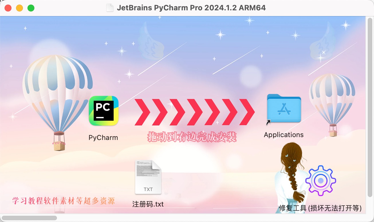 2024PyCharm Pro安装包下载完成后打开,拖动安装
