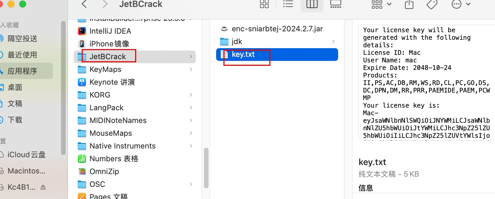 打开应用程序,在JetBCrack文件夹中找到key.txt文件并打开