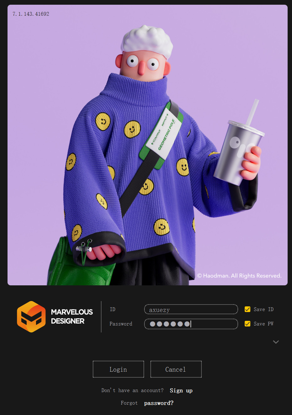 3、双击图标运行软件,输入任意ID和password,点击login即可使用(建议禁止软件联网)