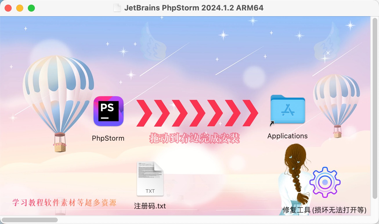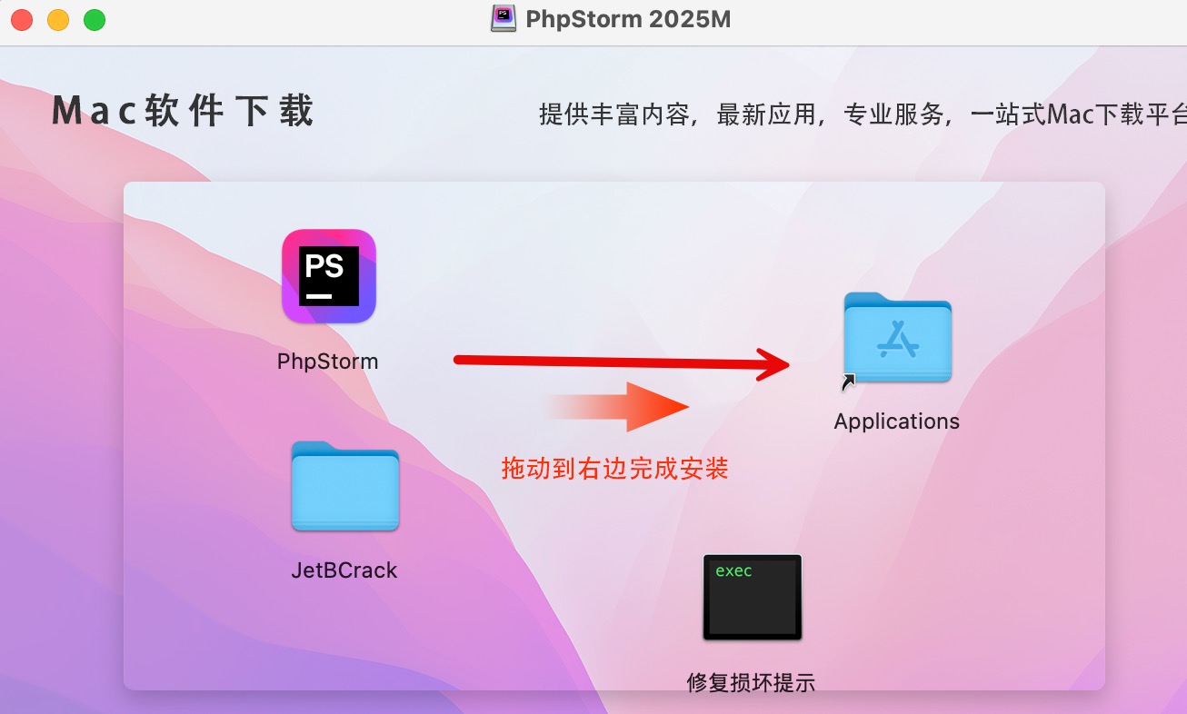 PhpStorm2024安装包下载完成后打开,拖动安装