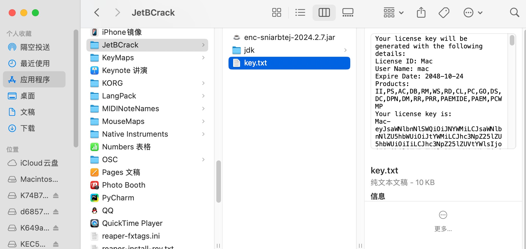 打开应用程序,在JetBCrack文件夹中找到key.txt文件并打开