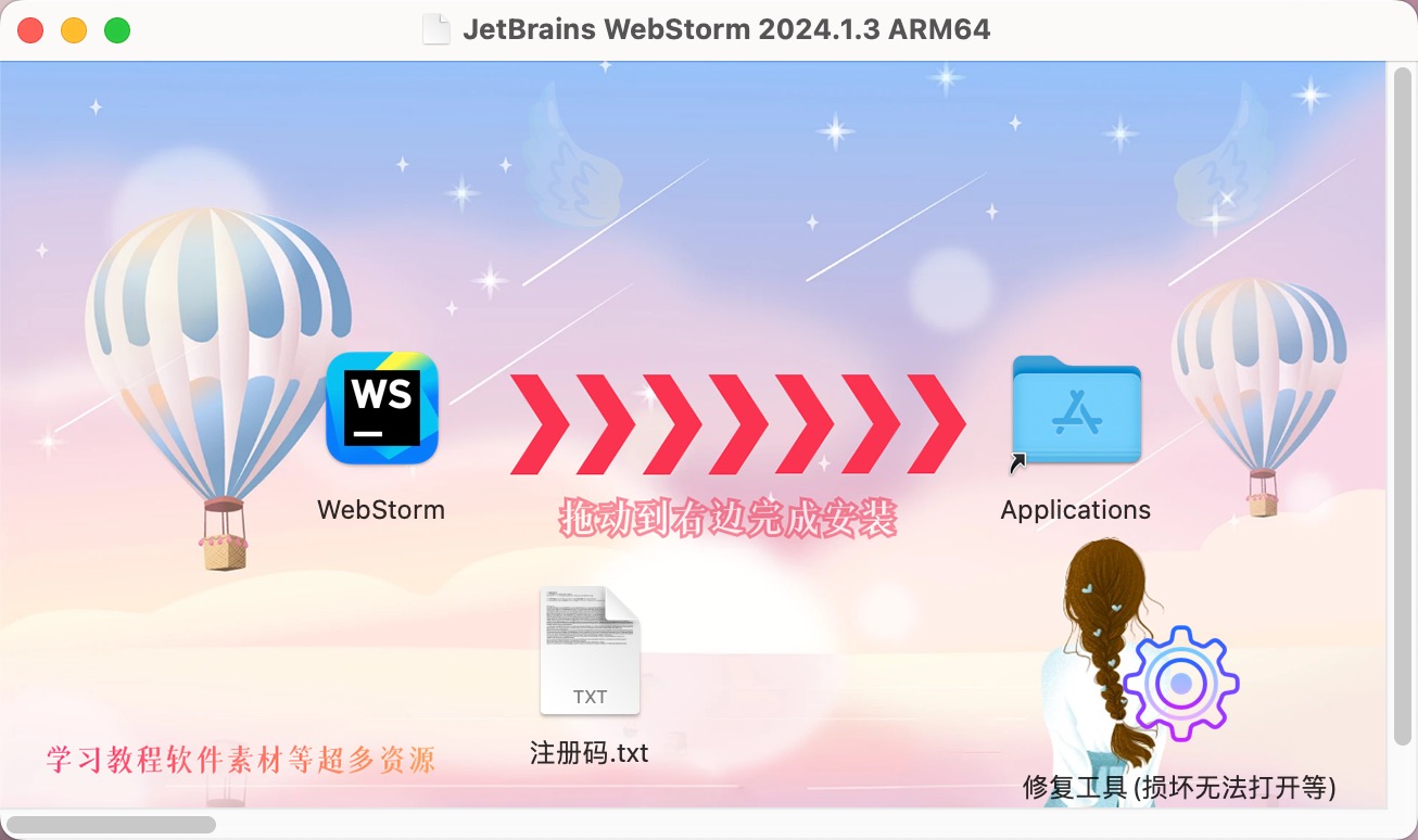 Webstorm 2024安装包下载完成后打开,拖动安装