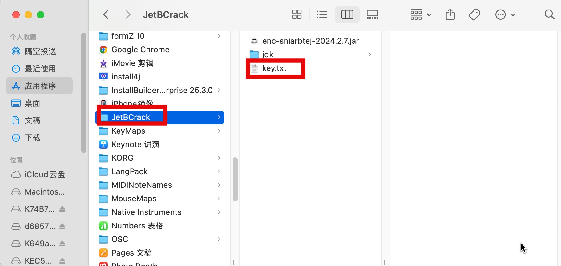打开应用程序,在JetBCrack文件夹中找到key.txt文件并打开