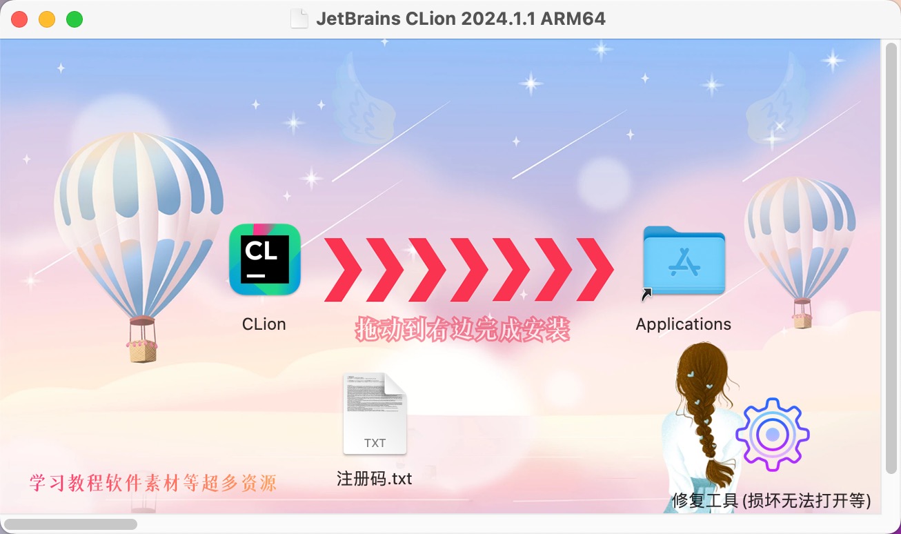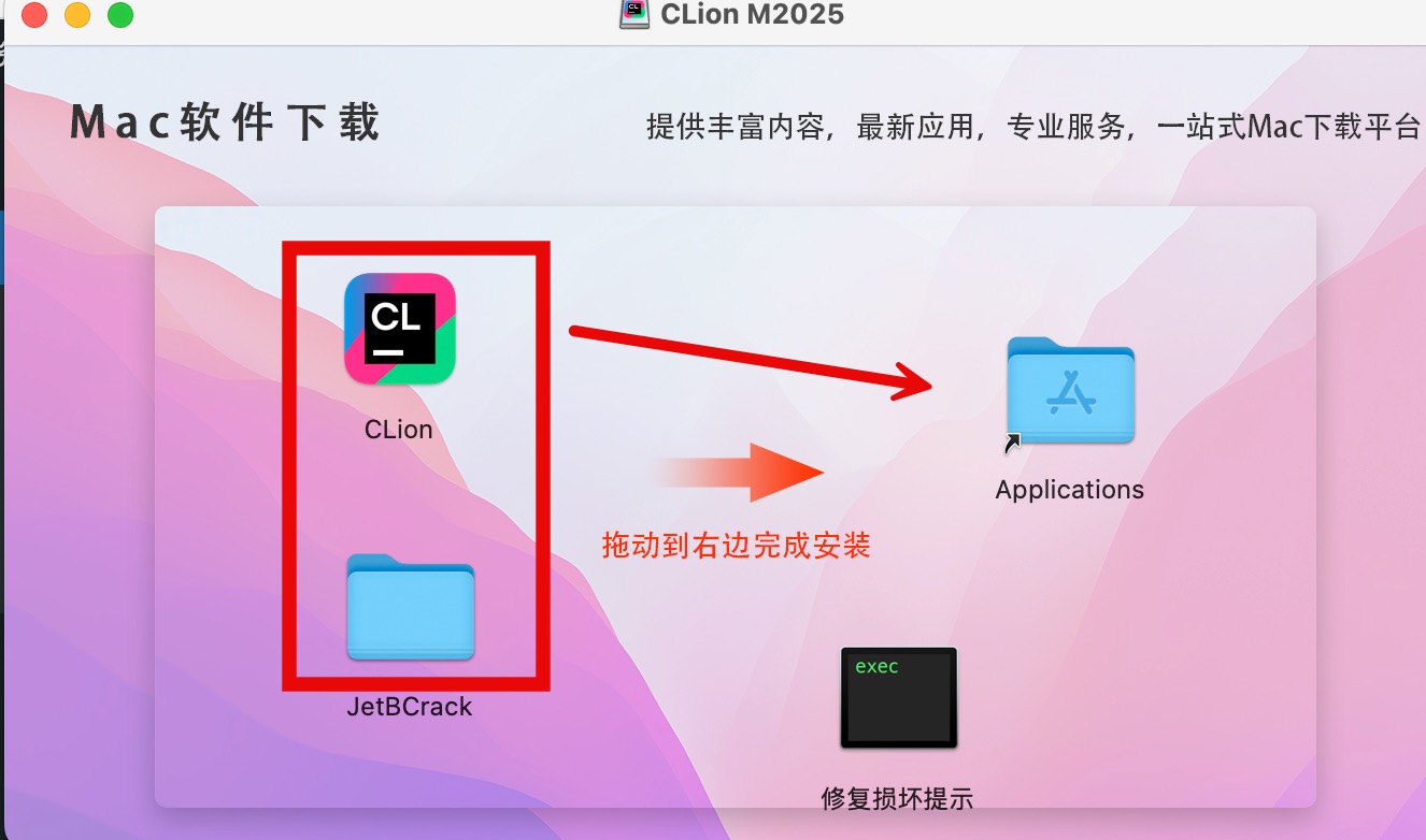 打开下载好的软件包,拖动软件和JetBCrack到右边的文件夹中进行安装
