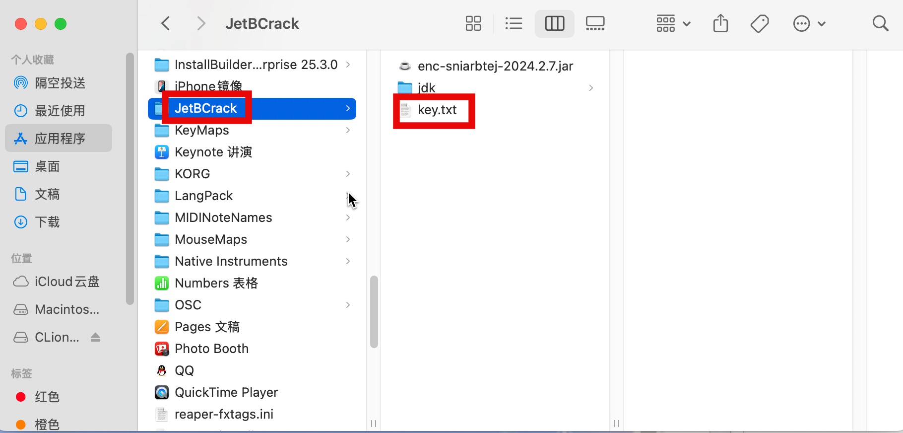 打开应用程序,在JetBCrack文件夹中找到key.txt文件并打开