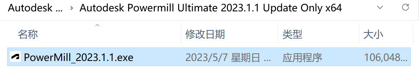 2、返回安装包打开Autodesk Powermill Ultimate 2023.1.1 Update Only x64文件夹,双击运行PowerMill_2023.1.1更新包,安装完成关闭。