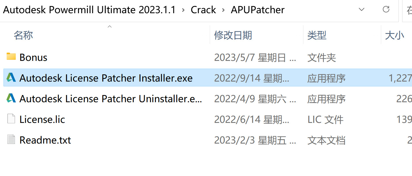 3、返回安装包打开Crack/APUPatcher文件夹,双击运行Autodesk License Patcher Installer.exe。