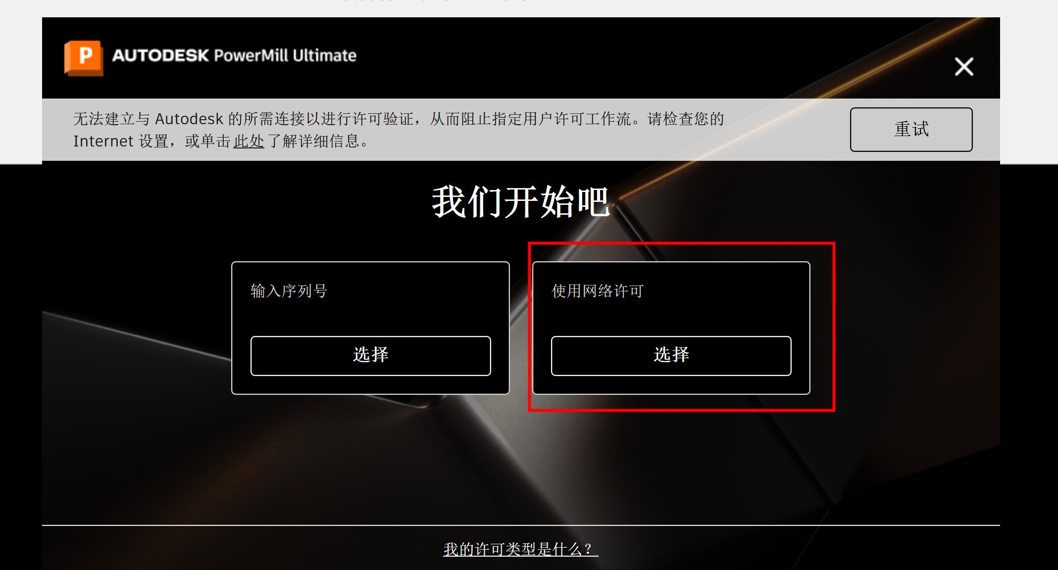 5、双击图标运行PowerMill Ultimate 2023,选择右侧使用网络许可,激活完成。