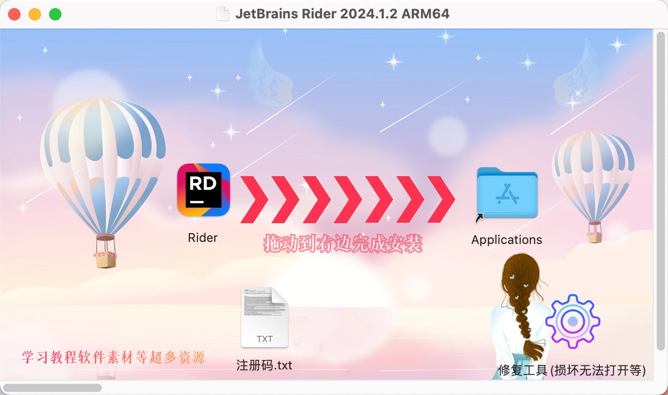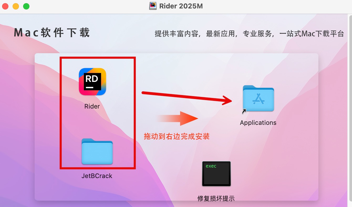 1、Rider 2024安装包下载完成后打开,拖动安装
