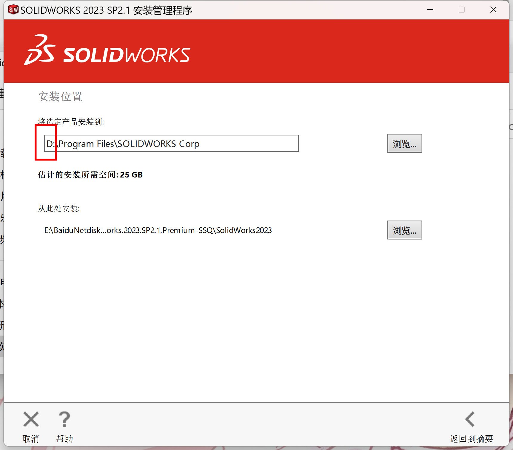 12、点击更改,更改安装位置,确定安装位置之后点击返回到摘要即可!(安装位置后面要用到)