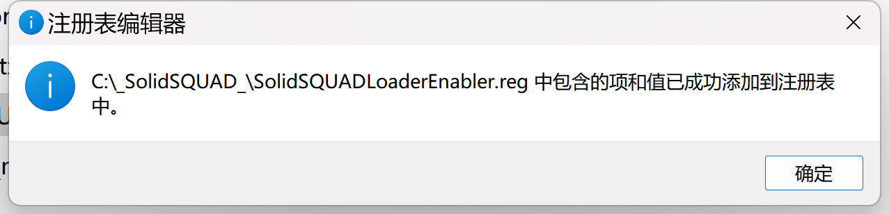 17、再次去到C盘_SolidSQUAD_文件夹里面,找到SolidSQUADLoaderEnabler.reg双击运行,点击是。