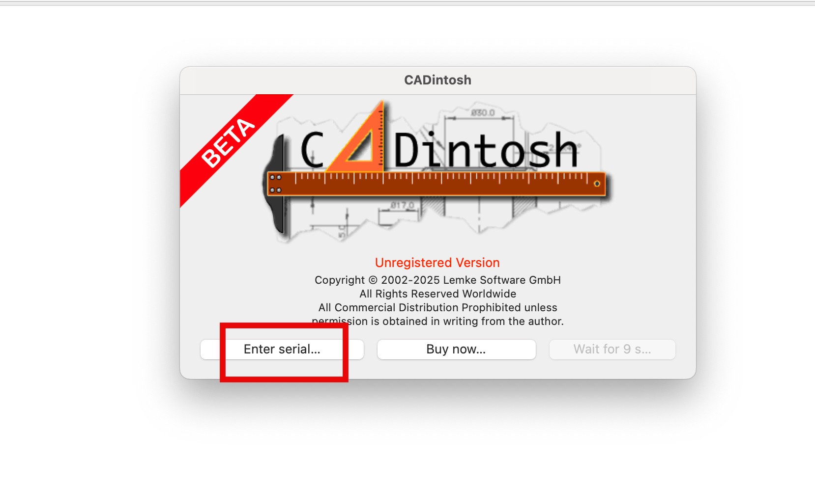 打开cadintosh x 8,弹出注册提示,点击enter serial…。