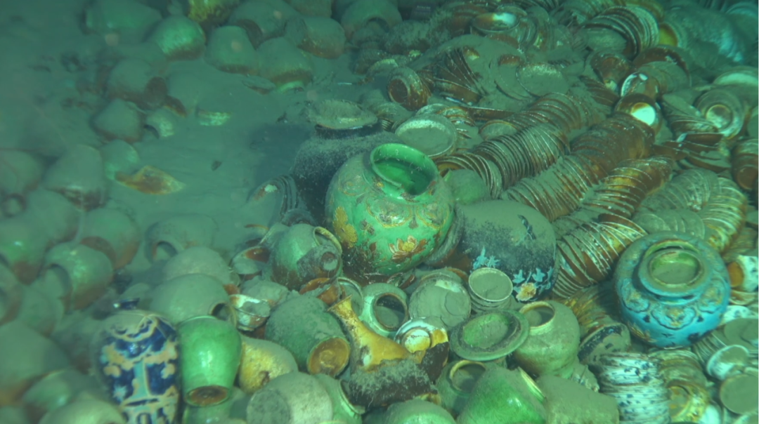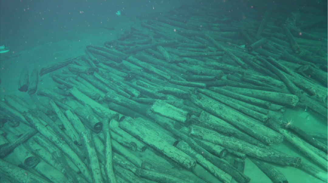 2022年10月,借助“深海勇士号”载人深潜器,我国在南海西北陆坡约1500米深度海域发现两处古代沉船。其中一处遗物以瓷器为主,推测文物数量超过十万件,根据出水文物初步判断为明代正德年间(1506—1521),定名为南海西北陆坡一号沉船。另一处以大量原木为主,初步研判为从海外装载货物驶往中国的古代沉船,时代约为明代弘治年间(1488—1505),定名为南海西北陆坡二号沉船。