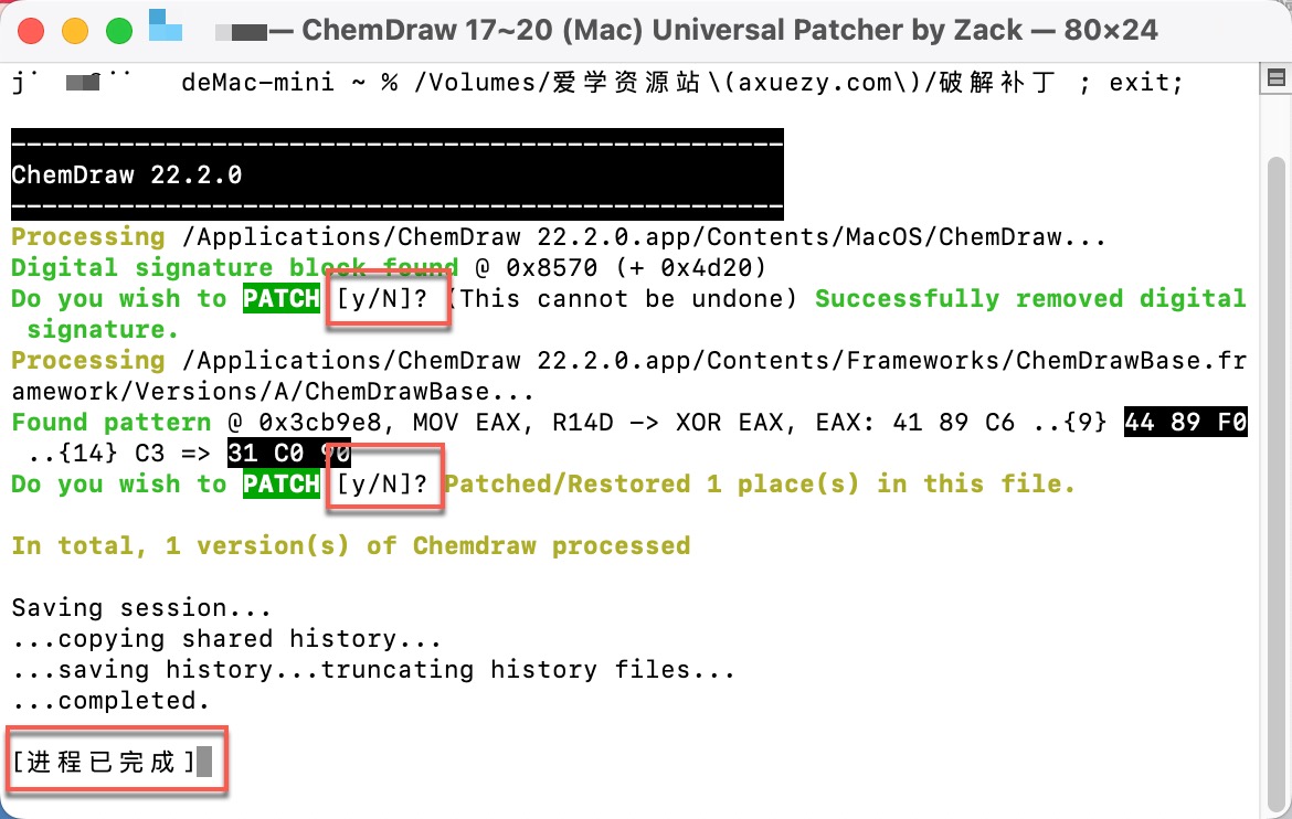 2、打开破解补丁。连续2次输入y,等待进程结束激活完成。