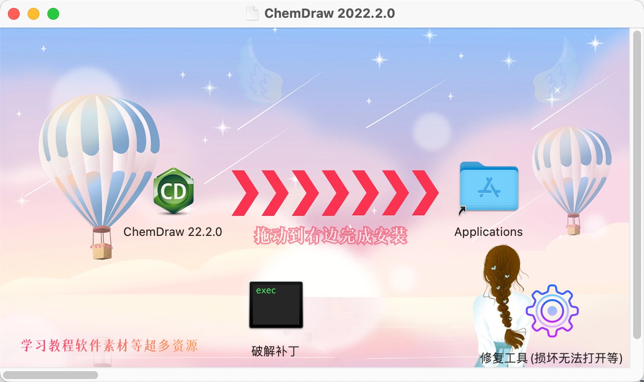 1、PerkinElmer ChemDraw Pro安装包下载完成后,拖动左侧的ChemDraw 22.2.0到右侧安装。