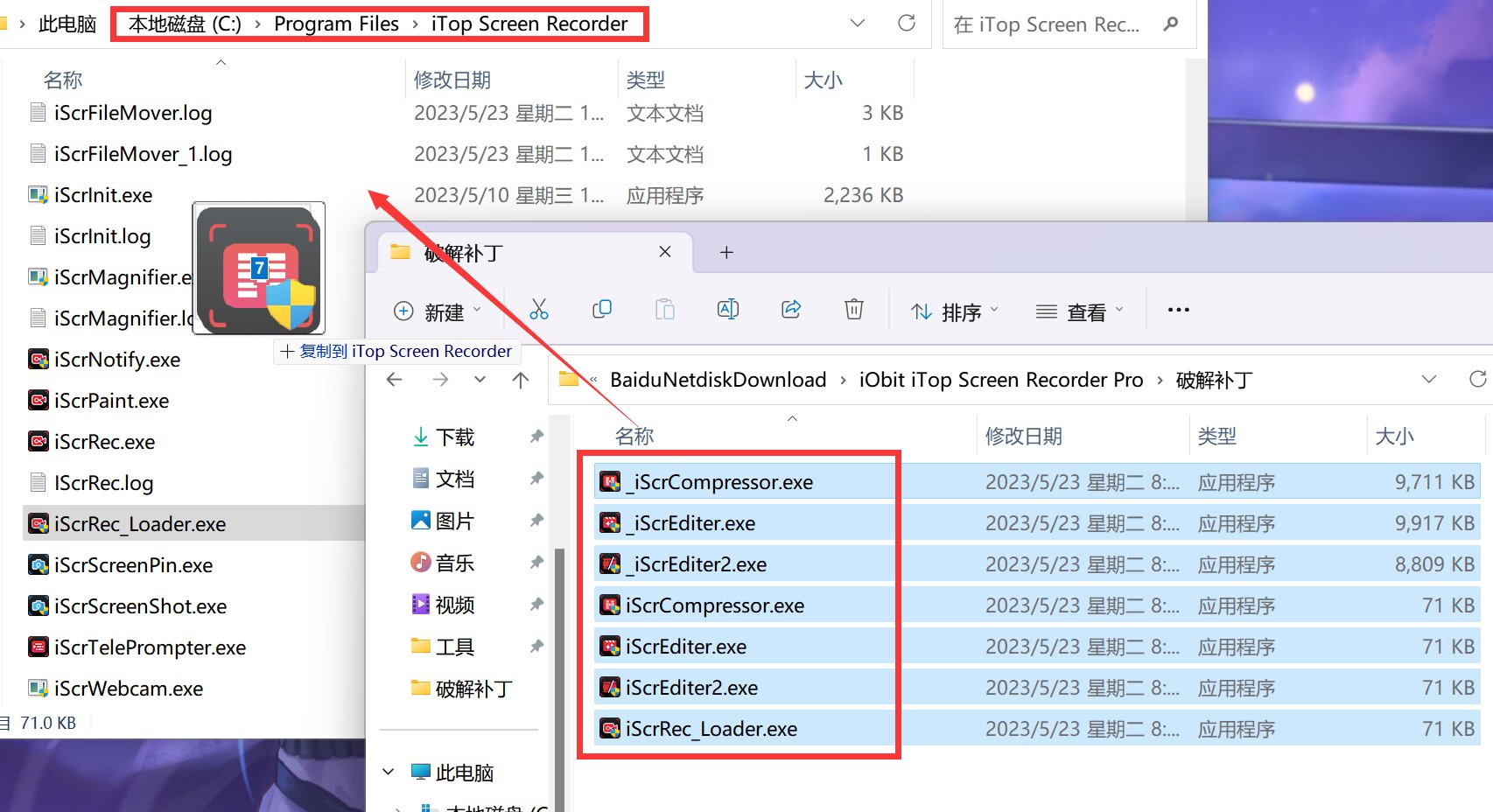 2、将破解补丁复制到C:\Program Files\iTop Screen Recorder