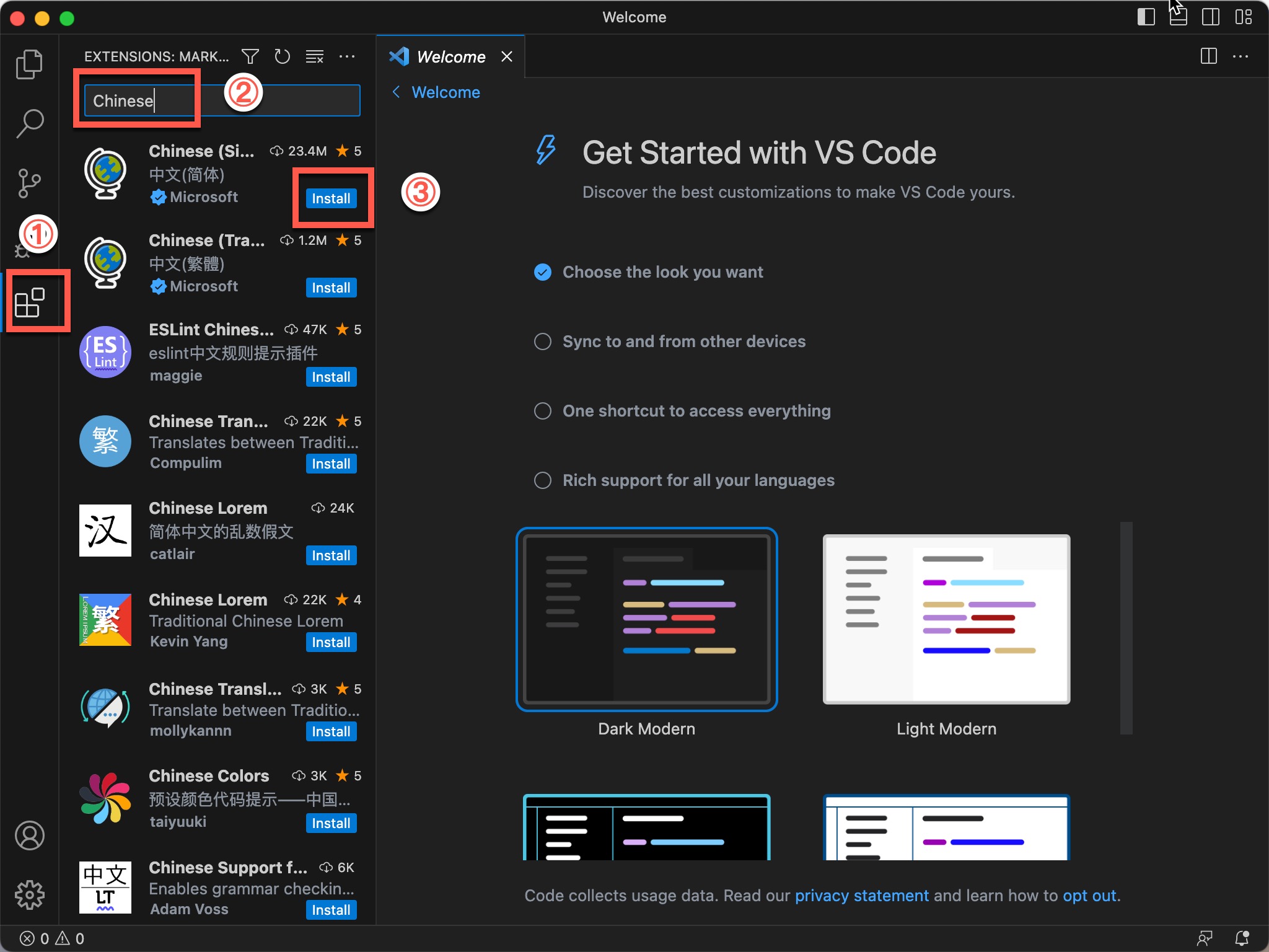 中文设置,按照下图输入Chinese,点击install安装后,重启软件即可。