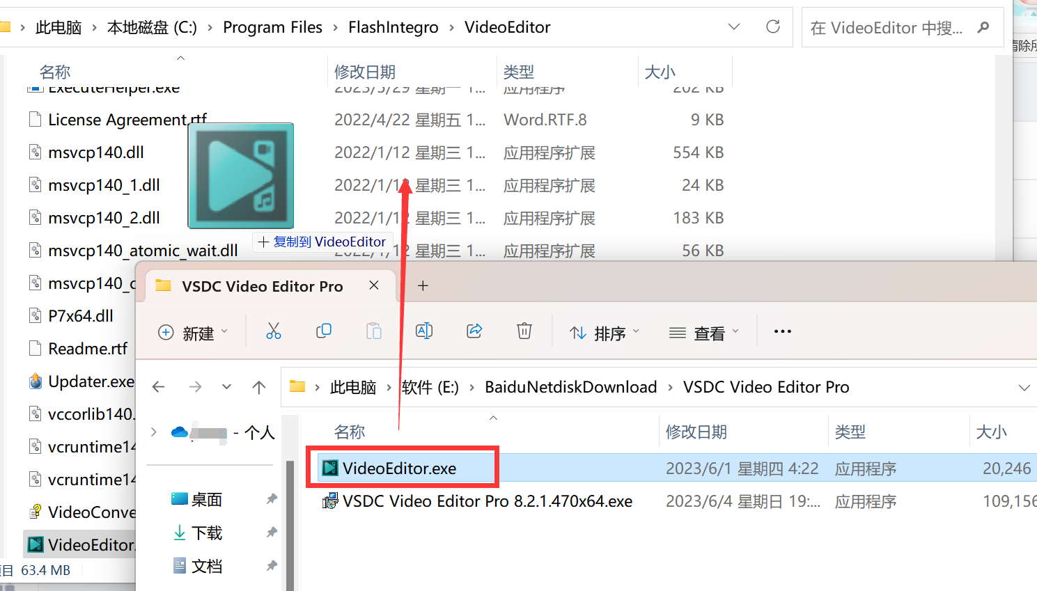 2、返回安装包将VideoEditor.exe文件复制到安装目录下(安装目录:右键软件图标,选择打开文件所在的位置),激活完成。