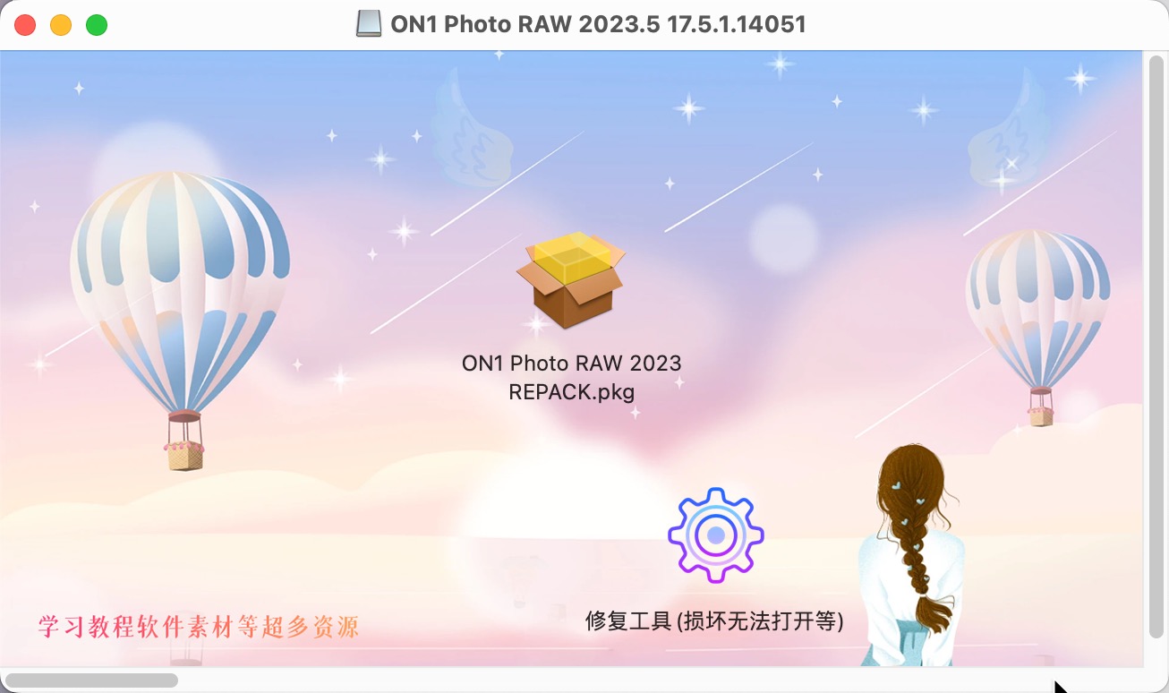 ON1 Photo RAW 2023安装包下载完成后打开,双击ON1 Photo RAW 2023 REPACK.pkg文件进行安装。