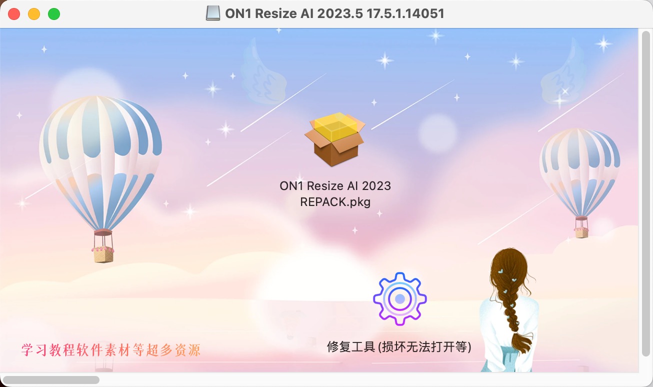 ON1 Resize AI 2023安装包下载完成后打开,双击ON1 Resize AI 2023 REPACK.pkg文件进行安装。