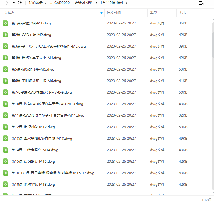 3、每节课都制作了精致的课件,用CAD制作的,为dwg格式,下载课件后,用CAD直接打开,可以在课件上直接操作和学习,不仅方便,而且效率也提高了。课件免费送给大家,大家可以联系客服要课件。