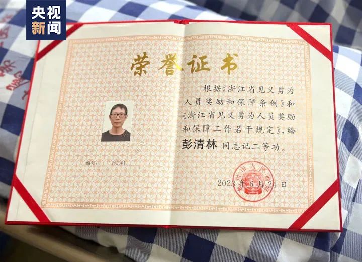 杭州市公安局授予彭清林一等治安荣誉奖章