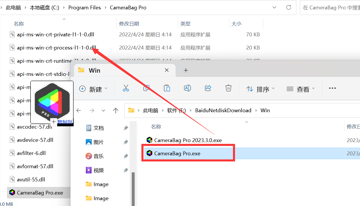 2、将CameraBag Pro.exe复制到安装目录C:\Program Files\CameraBag Pro中,运行CameraBag Pro.exe即可。