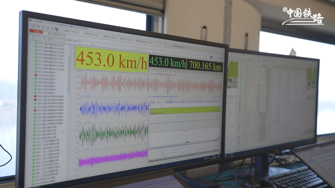6月28日,在湄洲湾跨海大桥,试验列车以单列时速453公里、相对交会时速891公里运行,其中CR400AF担当01车,最高运行速度达到时速453公里。