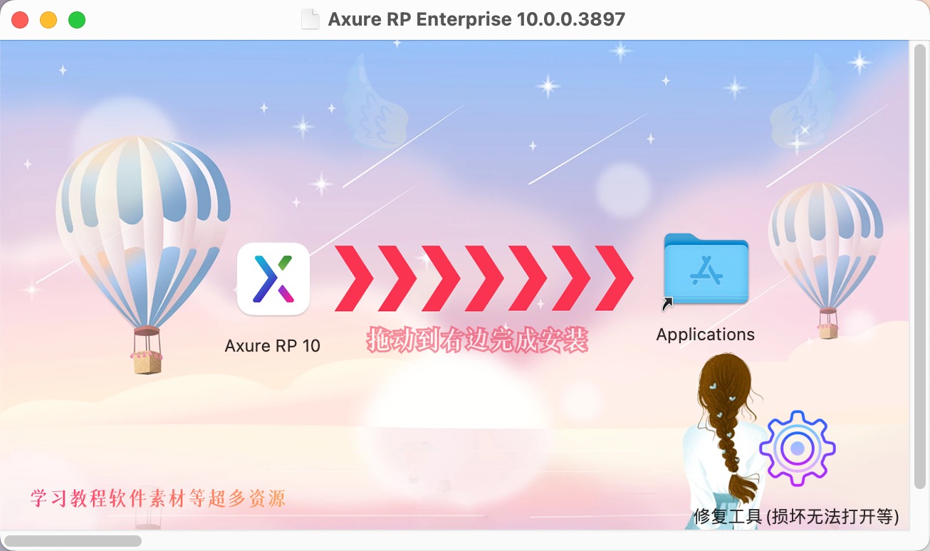 安装包下载完成后打开,拖到Axure RP 11到右侧进行安装