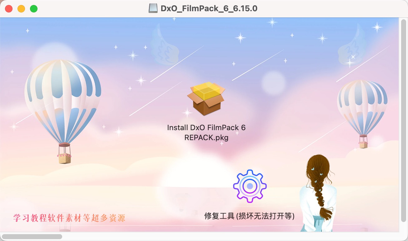打开本站下载的TDxO FilmPack 6安装包,双击pkg进行安装。