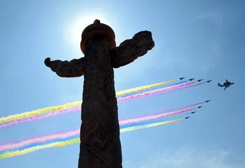 2015年9月3日,中国人民抗日战争暨世界反法西斯战争胜利70周年纪念大会在北京隆重举行。这是领队机梯队接受检阅。