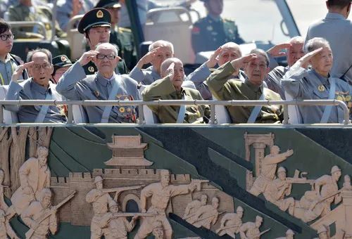 2015年9月3日,中国人民抗日战争暨世界反法西斯战争胜利70周年纪念大会在北京隆重举行。这是抗战老兵乘车方队。