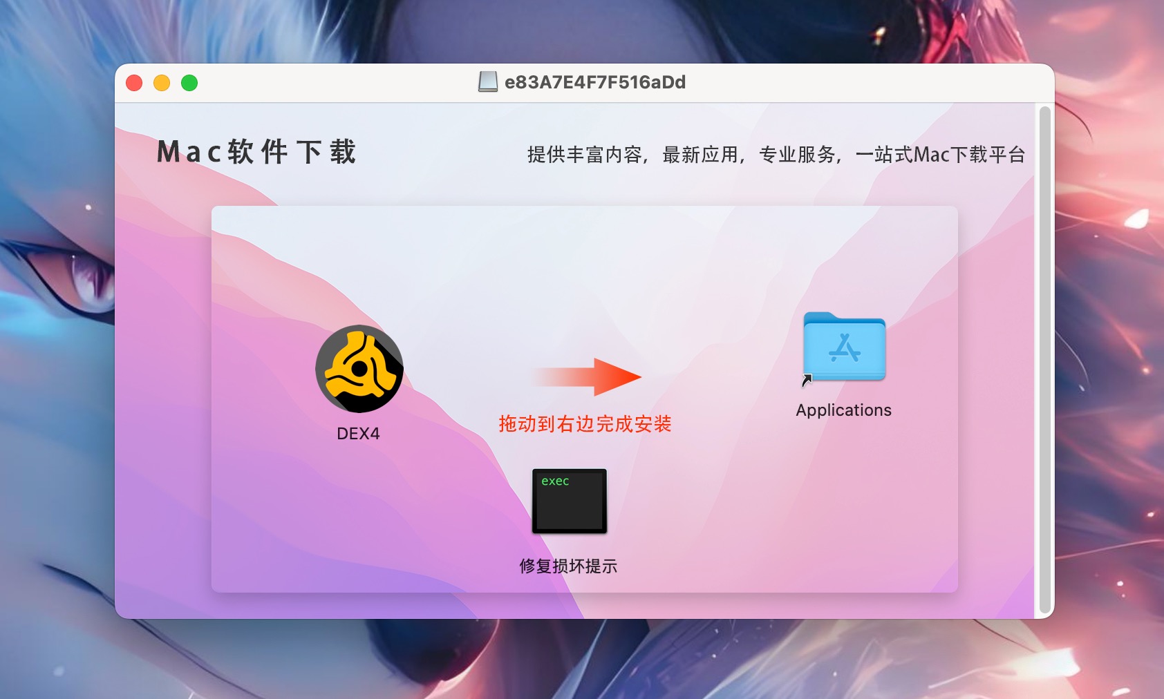 PCDJ DEX 4安装包下载完成后,拖动左侧的PCDJ DEX 4到右侧即可。