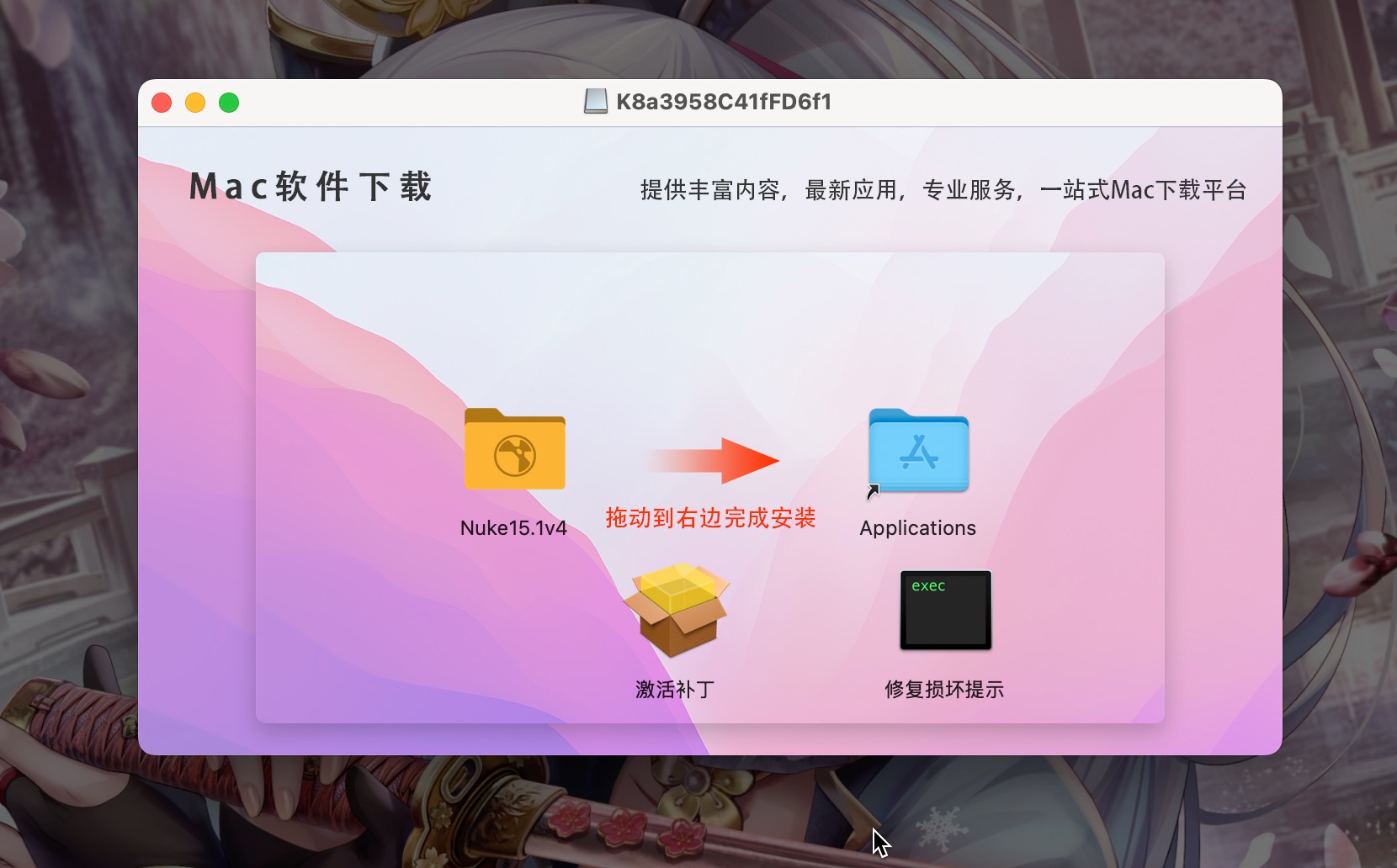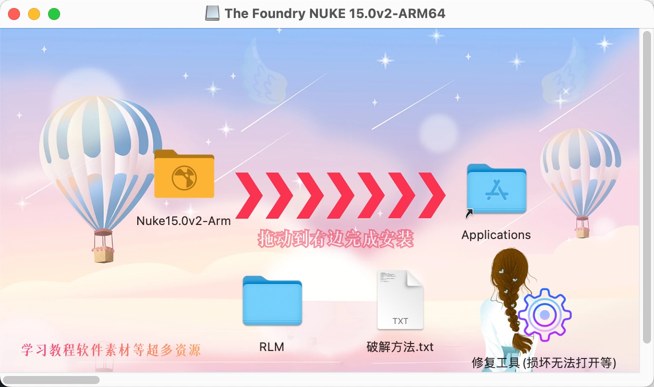 1、NUKE安装包下载完成后,拖动左侧的NUKE14.0v5到右侧开始安装。