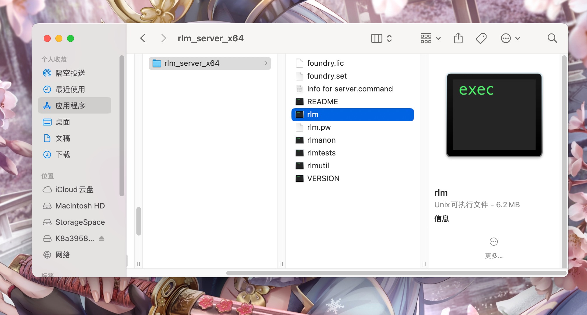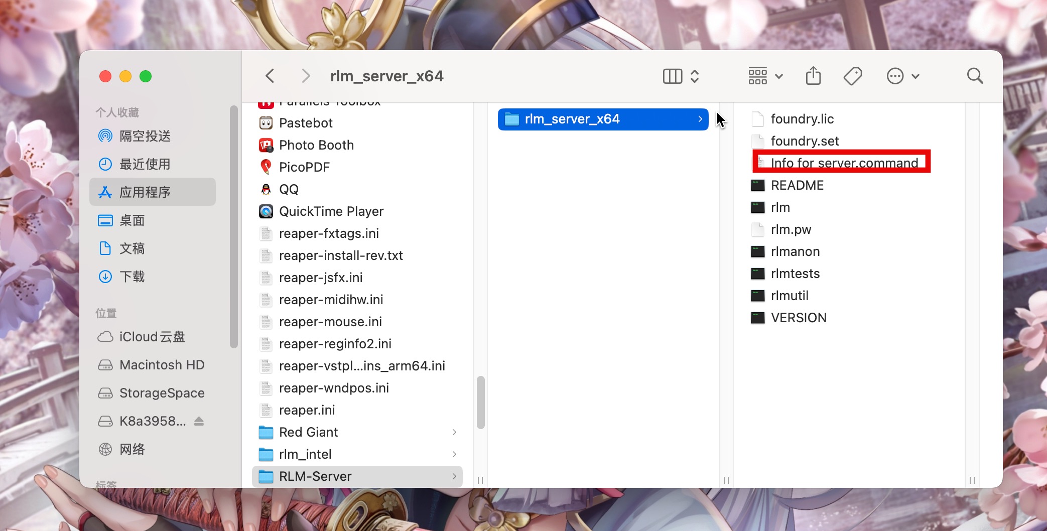 应用程序 – RLM-Server – rlm_server_x64 双击运行 Info for server.command