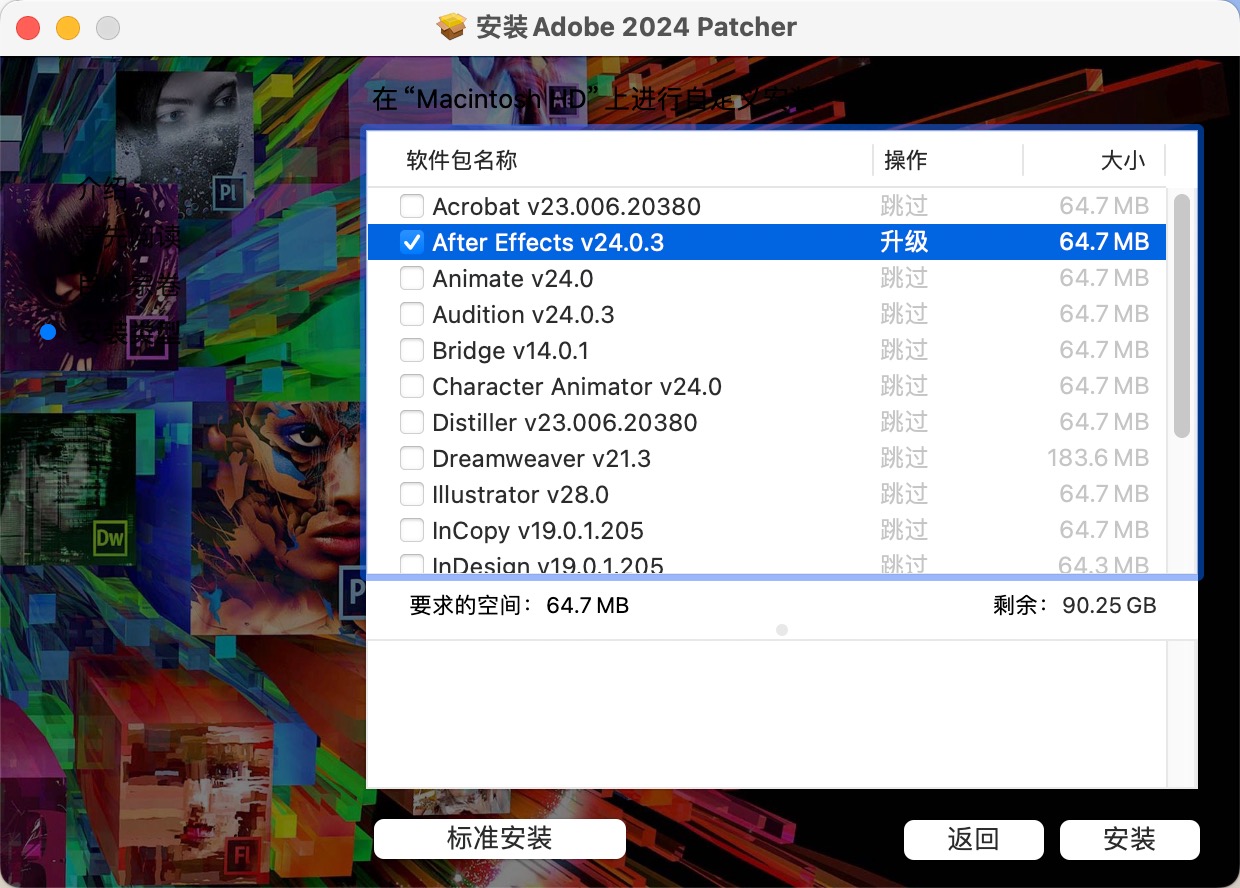 3、安装完成后,安装激活补丁,勾选After Effects v24,根据提示安装即可。