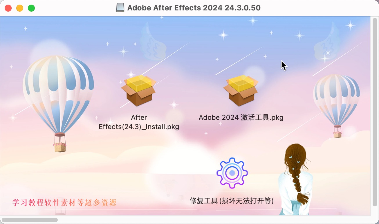2、打开本站下载的After Effects 2024,双击After Effects(24.3)_Install.pkg安装软件。