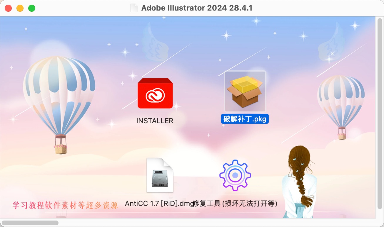 1、Adobe Illustrator 2024安装包下载完成后打开,双击install开始安装。